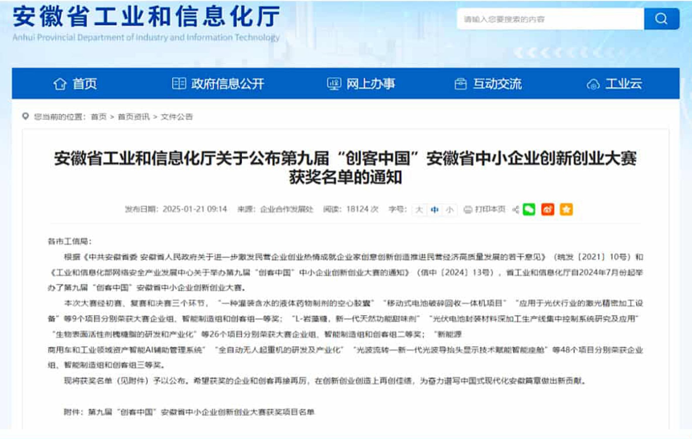 入選2022年度安徽省專(zhuān)精特新中小企業(yè) 入選2022年度安徽省創(chuàng)新型中小企業(yè)名單